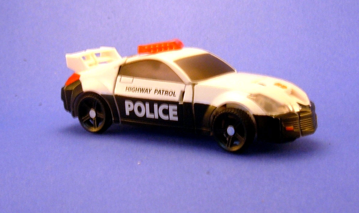 Car Mode: Prowl’s Universe 2.0 alt mode is a sporty police car. All is right with the world.