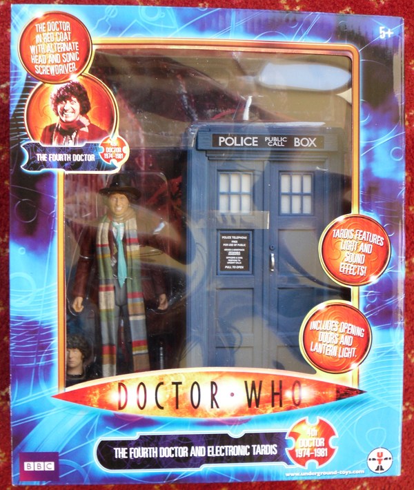 Underground Toys today shared a boxed photo of the upcoming 4th Doctor and TARDIS set through their twitter feed. Of course, the bad news is that the picture confirms that the 4th Doctor figure is just a straight-up reissue of an older figure. But the TARDIS is looking great. Check the pic after the jump.