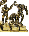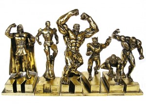 Monogram has revealed some new SDCC exclusives for 2010. Gold-plated versions of their MARVEL paperweights. Each gold plated resin sculpture features a Marvel hero or villain and a letter. When all pieces are assembled together they spell out M-A-R-V-E-L. Set comes in 6 character/letter combinations and features: Dr. Doom (M), Iron Man, (A), Hulk ( R), Wolverine (V), Spider-man (E), and Venom (L). See a picture of the full size set after the jump.