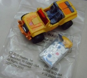 File this under toys that I covet. Listed at the auction site Taobao is a yellow/orange repaint of Transformers Classics Hound with a white repaint of Ravage. The Hound repaint is believed to be the Botcon exclusive Scorch. You can see the auction here, or see a larger picture after the jump.