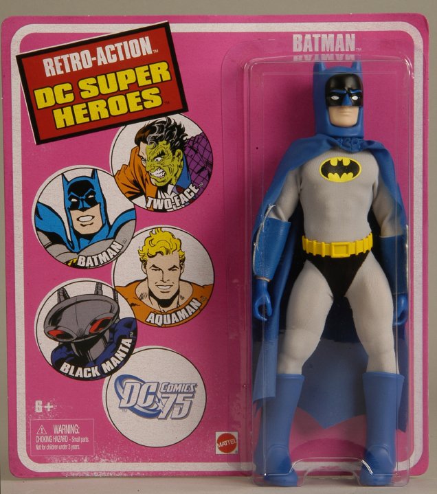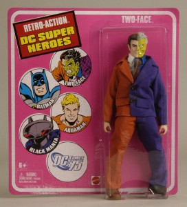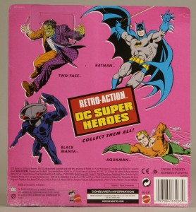 Mattel, via the MattyCollector.com facebook page, revealed carded images of wave 2 from their DC Retro-action figures. Wave 1 of these mego-esque figures are now available at your local Toys R Us. Wave 2 consists of Batman, Black Manta , Aqua-man and Two-face. Check out the carded images after the jump.