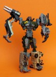 Combined Mode: The process of transforming into the combined mode is actually pretty fun. You press the drones onto the 4 pegs and they self-transform into the limb; which is pretty nifty. The resulting robot is pretty well sized; standing at about 8 inches. The combined robot mode is pretty thin and lank, but its an aesthetic that works. Visually the robot looks cohesive and he’s quite well armed. Articulation is pretty good with quite a few joints and poseability at the knees, hips, shoulders, waist and head.