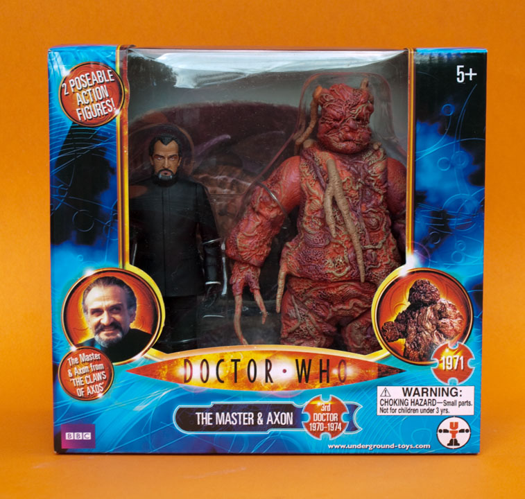 The Doctor Who Classics line continues with its newest Exclusive release; a Jon Pertwee era 2-pack featuring Roger Delgado’s Master and an Axon. This two-pack comes boxed and runs $40, typical of the Doctor Who Classic releases. Underground Toys has been on a roll with the classics line up as of late and these two figures show why this is quickly becoming my favorite toy line. Lets get into the good and the bad of this set.