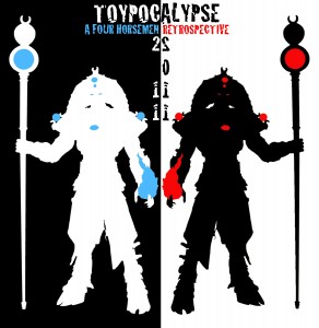 The Four Horsemen have released packaged images of their Light Talisman Scarabus and Dark Talisman Scarabus figures. This set of figures will be exclusively available at the Four Horsemen’s upcoming gallery show, TOYPOCALYPSE: A Four Horsemen Retrospective at the TT Underground Gallery in New York City. These are strictly limited to only 100 sets to be sold at Toypocalypse, and will be available beginning opening night for $100.00 per set. This is the most limited production run of any figure variants the Four Horsemen have ever done, so be sure to get there early if you want yours!