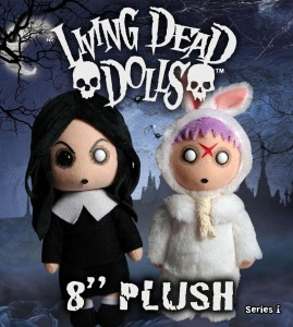 Mezco Toyz launches Living Dead Dolls Plush, these little imps are creepy and cuddly. They measure 8inches tall and are stuffed with mischief. The first assortment includes two of Living Dead Dolls’ most popular characters, Sadie and Eggzorcist. Sadie sports her signature black dress, while Eggzorcist features her fluffy bunny costume and noose.