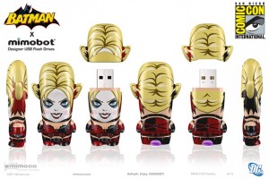 Mimoco, makers of the mimobot designer USB drives have announced that their 2011 SDCC exclusive drive will be none other than Harley Quinn as featured in the Batman: Arkham City game. This flash drive will be limited to a total of 800 units, and as with all mimibots, it is preloaded with MimoDesk character-specific content including wallpapers, avatars, screensavers, and other digital extras. The limited edition Harley Quinn MIMOBOT® will be available for purchase exclusively at Mimoco’s booth (#4938).