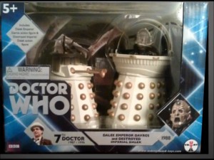 As the avalanche of new Classic Doctor Who figures continues; a youtube video gives credence to one of the rumors on an upcoming set. The video (with a screen capture below) shows a packaged sample of a damaged Imperial Dalek and Davros as the Emperor Dalek from the 7th Doctor episode “Remembrance of the Daleks”. Of course, nothing is official until announced (or at least solicited to retailers) by Underground Toys; but it’s pretty likely we’ll see this set in the future. Personally, I’m thrilled with this set. And wouldn’t that destroyed Dalek would also be a fantastic pack in with an Ace figure?