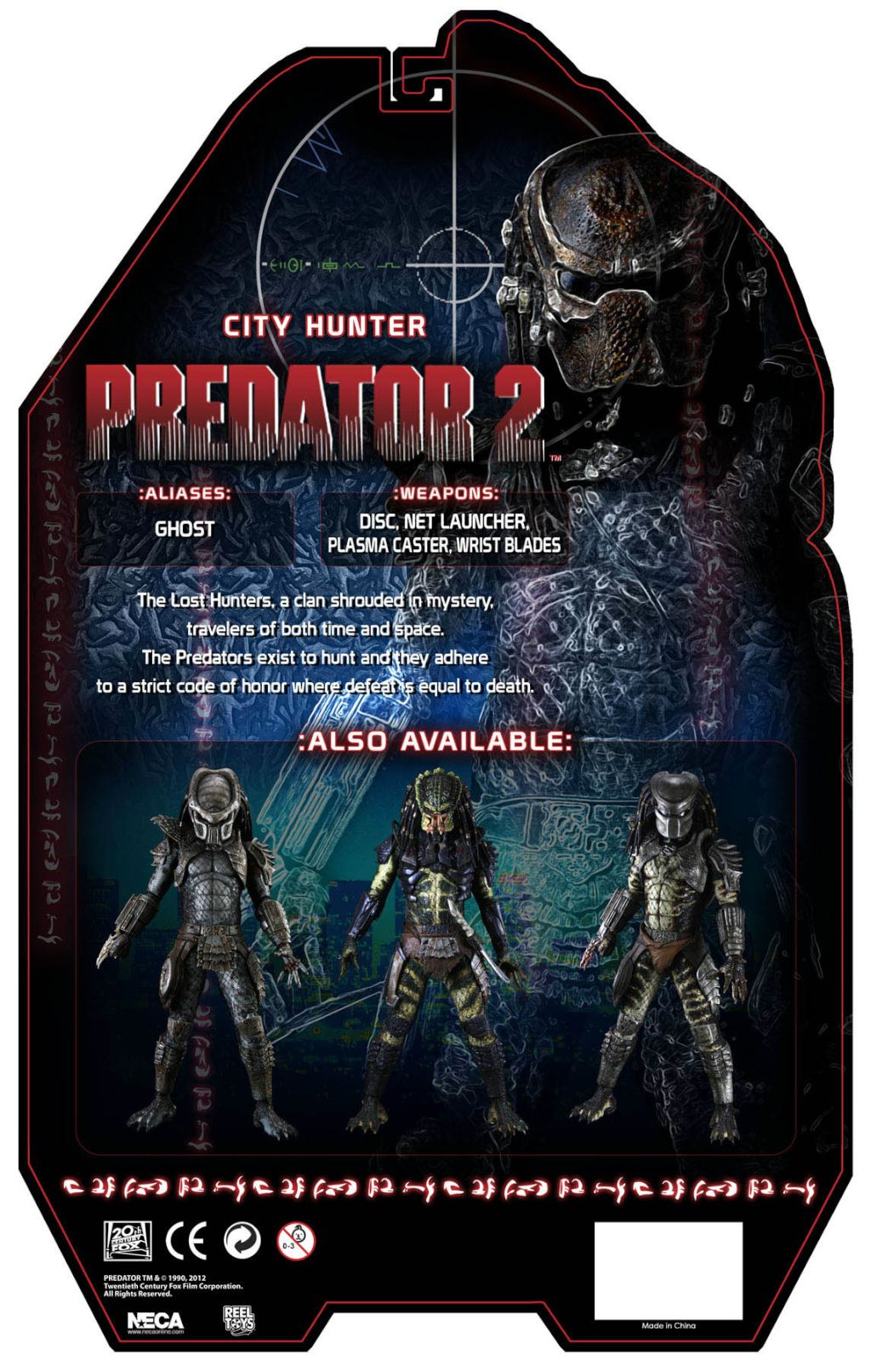 NECA took to their twitter account this weekend and was sharing glimpses into their world. Among the news items, they announced that the 2012 SDCC exclusives Predator item is a “Cloaked City Hunter” figure. Unfortunately they’ve not released any images of the figure, so you’ll have to be satisfied with the cardback, which is below.