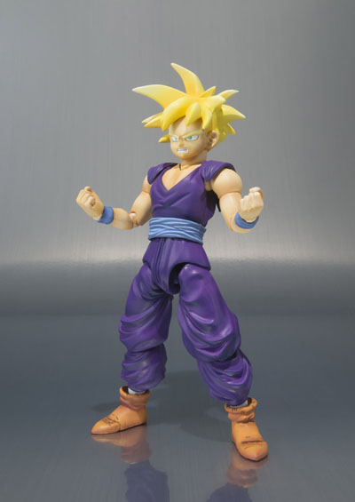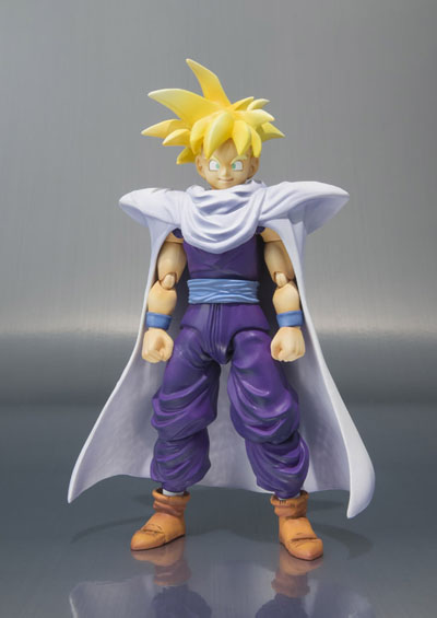 A second SDCC exclusive from S.H. Figuarts is the Super Saiyan Son Gohan San Diego Comic-con Special Color edition. Perfect for the Dragon Ball fan, this figure includes a cape, multiple faces, interchangeable hand parts and the ability to switch to Super Saiyan 2, this version features intense shadow effect skin coloring and portrays the special bold purple uniform received from Piccolo and worn during Son Gohan’s fight in the Cell Games. Priced at just $30, this 4.5″ figure is likely going to fly out of the convention hall. Check out a gallery below and for more information on Tamashii Nations products go to http://www.facebook.com/Tamashii.USA or http://www.twitter.com/TamashiiNations