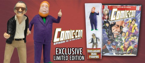 The SDCC-centric documentary “Comic-con Episode IV: A Fan’s Hope” is getting a DVD release just in time for, are you ready for this, Comic-con. There will be multiple formats for this release, a basic DVD only version ($19.99) and several DVD+minifigure combopacks ($29.99). The two Collector’s Editions will contain the DVD alongside action figures of Stan Lee and Harry Knowles or Joss Whedon and Spurlock. The Stan Lee / Harry Knowles set will be available at at select stores and at online retailers. At SDCC this set will be available from NECA Toys. The Whedon/Spurlock set is a Toys R Us exclusive, and may be available as part of their suite of exclusives. Finally, a third combo-pack from HeroClix with all four figures and the DVD will also be available in July at game stores nationwide ($29.99 SRP).