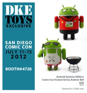 DKE Toys have sent word of their first two SDCC exclusives, promising many more in the days leading up to the show. The first is the Android Summer Edition: Comic-Con Variant Set by Andrew Bell. The set will cost $25 and be limited to 1000 pieces.