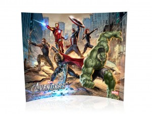 My pals at TrendSetters sent over word of their 3rd SDCC exclusive and some updates on their previously announced ones. The Avengers StarFire curved glass print is limited to just 50 pieces. The StarFire print is a unique 12″ x 10″ print on a curved surface of glass. While being translucent it is still vibrant with color and the curved surface is designed to catch the light. The StarFire print is going to be $60 at the show.