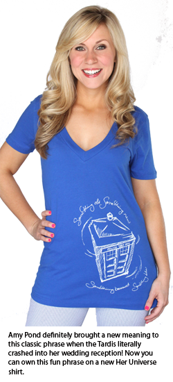 Her Universe recognized the burgeoning force of female Doctor Who fans and the need to create unique apparel and merchandise just for them. The international iconic brand and television hit Doctor Who is the longest-running sci-fi series in the world and continues to earn critical acclaim as BBC AMERICA’s highest rated series as well as the #1 downloaded series for iTunes in 2011. The new Doctor Who collection by Her Universe will premiere in July with fashion tops featuring images, characters and phrases from the Doctor Who universe all with fashion-forward designs for girls to look “Geek Chic.” To recognize their female Doctor Who fans, BBC Worldwide has created a special Doctor Who logo which will only appear on merchandise from the Her Universe collection.