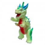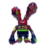 - LEROY C. – The world’s happiest dinosaur is rendered with exacting care to be authentic to the very last detail of the giant lizards of prehistory. Okay, we may have gotten bad info from wikipedia or something, but we definitely remember someone saying that all dinosaurs were translucent green and 4 inches tall so that’s what we went by. Maybe it isn’t so accurate after all, but that doesn’t make this toy any less sweet! Just take LEROY C to your toy shelf and not the Smithsonian and everything will be fine. Invisible Creature’s dino creation is highlighted with red, white, black, yellow, and green sprays. This two piece vinyl figure is jointed at the neck.