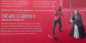 JediNews broke the news today of Hallmark’s Star Wars Celebration VI exclusive ornament. This year, they’ve got a special three pack up their sleeve depicting the fight between Obi-Wan and Ponda Baba. But, you may be saying, that’s just two ornaments? Well the third ornament is Ponda Baba’s severed arm.