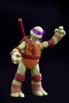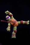 Donatello: Turtles have come a long way in twenty plus years – this is one sweet figure. Donatello features articulation at his knees, hips, shoulders, elbows, wrists and neck. The figure is well articulated without being floppy, everything holds well, letting you make some pretty cool poses that stay put. And as a result of his large feet, Donatello is a pretty stable figure – easily standing in a variety of poses with no stand required (however his feet do include peg holes). One of the things that stands out is how well the articulation is hidden – knee pads hide most of the knee joints and his hips are obscured by his flexible, um, turtle belly. It’s a very different construction then we had on the original Turtles, thankfully.