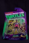 Kraang: When Turtles first hit the scene, I was a little old for them, so despite Kraang being one of my faves, I don’t think I ever owned a figure of him. I fixed that today. Kraang included Kraang, a robot body for him and two weapons. Starting with the blobby guy himself, he is removable from the robot’s abdomen – and he is squishy. The sculpt and paint is right on, I don’t think I could ask for more out of a squishy figure of a talking brain with limbs.