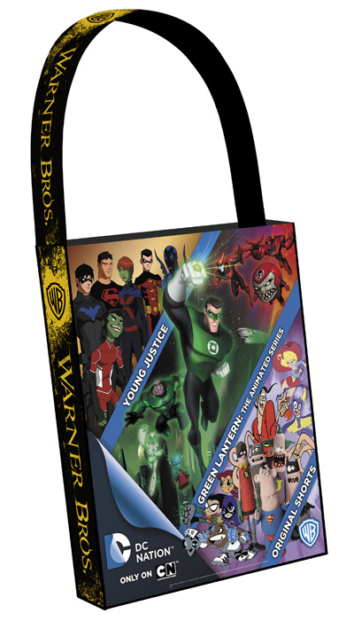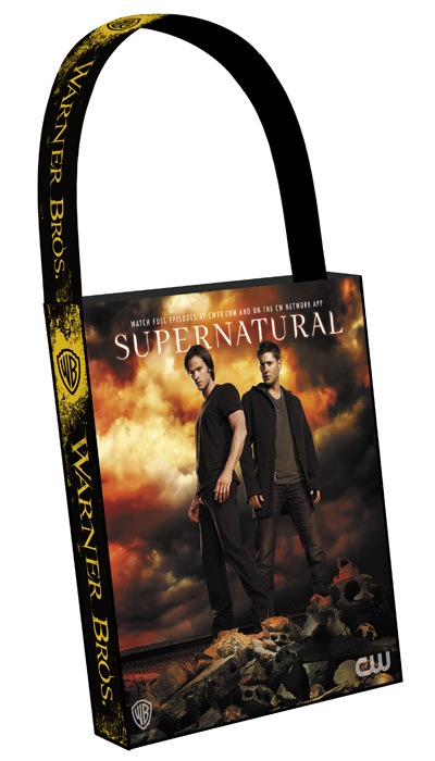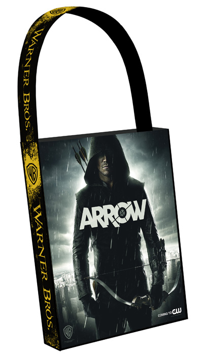 If you’ve been to SDCC – this post may result in flashbacks or some other post-traumatic stress reaction; but Warner Bros. today debuted the art work for their 2012 SDCC giant bag. With 130,000 of these made, these 24″ x 29″ bags start off super awesome and are really, really, really heavy by the end of the day. This years’ featured WB properties include Arrow, Big Bang Theory, DC Nation, Fringe, Supernatural, The Vampire Diaries, Man of Steel and Pacific Rim.