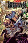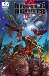Based on the upcoming toy line from DST, it’s Battle Beasts #3 from IDW! The epic invasion of Earth by the Beasts has turned San Francisco into a war zone, and the army has been called in to deal with the situation. Vorin, Merk and Gruntos take their human charges underground, and we catch a glimpse of how their band of brothers was formed. The last chapter before the whisker-rattling finale! Regular cover by Valerio Schiti; 1 in 10 cover (part two of a triptych) by Jeff Zornow.