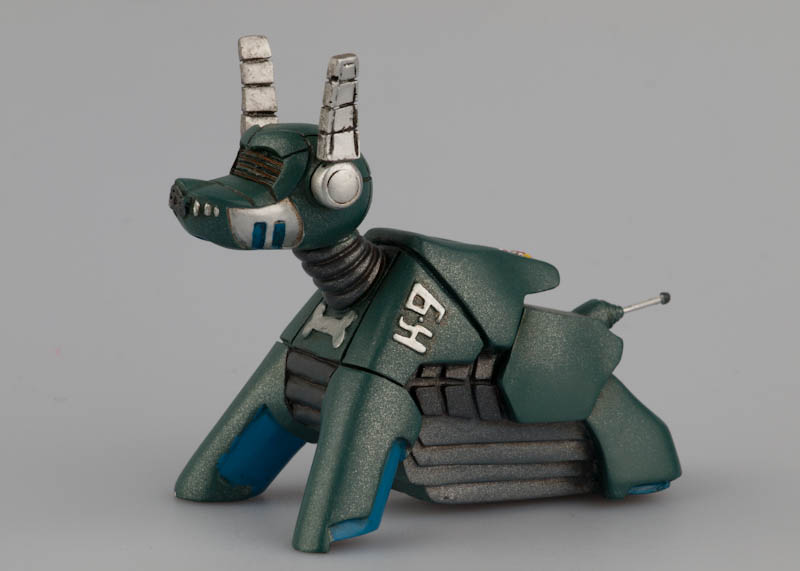I’ll admit, I’m not a huge fan of K9’s redesign – but this is a nice figure. Or, at least, a nice mini-statue as it’s a non-articulated resin figure. The figure feels quite sturdy, but the thin tail is something to be careful with – it seems prime for breakage. The figure’s sculpt is excellent, looking spot on the character’s model. The paint on the figure is particularly nice, featuring a nice metallic shimmer on the grey. The red paint on K9’s ‘eyes’ could be a bit brighter but otherwise the details are also spot on.
