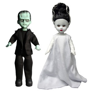 Mezco today sent out a quick announcement with what is certain to be a huge addition to their Living Dead Dolls;Frankenstein and his Bride! Two of the most popular of the Universal Monsters now joing The Living Dead Dolls- each standing 10inches tall and with 5 points of articulation.