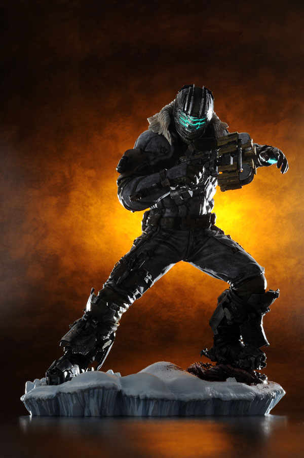 Kotobukiya sent out a press release earlier this week with the details on their next video game entry in their excellent ArtFx statue line. This next release is Isaac Clarke from Dead Space 3. This 12 1/2″ statue includes a ball jointed neck, LED lighting in the helmet, backpack and glove and stands on a snowy display base. This statue has an SRP of $139.99 and a release date of June 2013. Check out pics in the gallery below, and after the jump, see the complete press release.