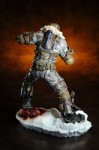 Tracking down the galactic menace to stop it once and for all, the former engineer turned hero Clarke stands triumphant after finishing off a Necromorph on the frigid Tau Volantis. Isaac wears his iconic Resource Integration Gear suit, complete with slitted facemask, with new alterations for the third game and its arctic setting. His gear is incredibly detailed with mechanical components, different textures of cloth, belts, pouches, seams, clothing creases, a fur-lined collar, and much, much more. The RIG suit flexes around Isaac as he lunges to one side in a battle stance with his trusty Plasma Cutter in hand. The coolest part of Clarke’s look has always been the energy glow of his mask and other components, and Kotobukiya has recreated that with LED lights in the statue’s helmet, backpack, and glove! There’s even a ball-joint in the hero’s neck so you can pose him to your liking. Isaac Clarke stands nearly 12 ½ inches tall (1/6 scale) on an amazing snow terrain display base complete with the bloody remains of the last Necromorph!