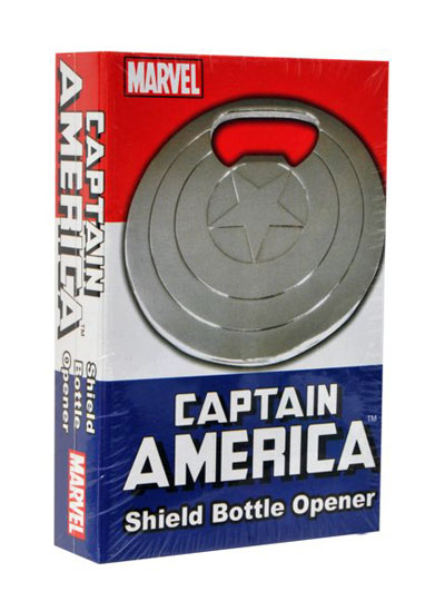When Captain America throws his mighty shield, all bottle cap that oppose his shield must yield! Cast in solid metal, this bottle opener depicting the Sentinel of Liberty’s ever-present accessory features all the detail and container-opening ability of this iconic weapon, and at 3 inches in diameter it fits in your pocket with ease. Warning: Will not return to you when thrown. Comes packaged in a collectors case. SRP: $18.00