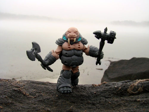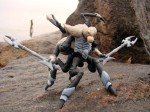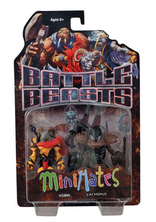 After years of teasing, Diamond Select Toys’ Battle Beasts hit stores this week. Each figure stands 2 inches tall with 14 points of articulation. This first series includes four different two-packs: Vorin the Ram with Vachonus the Scorpion, Merk the Falcon with Fenruk the Tarantula, Gruntos the Walrus with Tate Reynolds and Strictus the Rattlesnake with Bliss Reynolds. The Beasts are all depicted in exclusive comic- accurate color schemes, and human characters Tate and Bliss are only available in this assortment they each come with one of the two Dread Weapons.