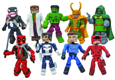 The best Marvel Minimates DST has ever made are back for a second series! This time, eight more of Marvel’s most famous heroes and villains get the ultimate Minimate treatment: Mr. Fantastic & Dr. Doom, Daredevil & Venom, Punisher & Deadpool and Hulk & Loki! They’re the best versions of Marvel’s best characters, and they’re only available at specialty stores! Each Minimate stands 2 inches tall with 14 points of articulation and a variety of interchangeable parts and accessories. SRP: $9.99