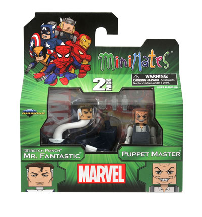Diamond Select celebrates the return of Johnny Storm to the Marvel U. with this series of Minimates depicting the Fantastic Four! The assortment includes Flame-On Johnny Storm and Blastaar, Mr. Fantastic and the Puppet Master, the Invisible Woman and Moloid, and a rare variant set featuring the Puppet Master’s stepdaughter Alicia Masters and Moloid! Each Minimate stands 2 inches tall with 14 points of articulation and a variety of removable and interchangeable parts and accessories. The figures in this assortment will only be available in comic shops and specialty stores, so don’t miss out! SRP: $8.99/two-pack.