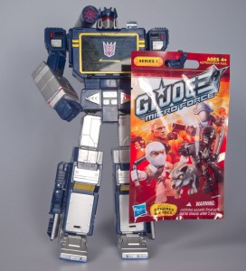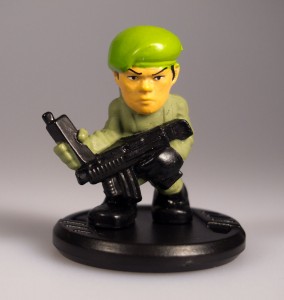 It’s that wonderful time of year where new things actually start to show up at your local stores. Today while in Toys R Us I saw the new G. I. Joe Micro Force blind bagged figures. If you missed their unveiling at JoeCon, Micro Force is essentially a G. I. Joe take on Star Wars’ Fighter Pods. Each blind bagged set includes 2 figures, an I.D. booklet and 2 discs. There’s a gameplay element of these discs referred to in the I.D. Guide, but they also serve as stands. The figures are right about 1 1/4″ inches tall, and are unarticulated. For a figure of their size, the deco on them is quite good. The two figures in my set where Lt. Stone and the Beast Ninja Commander. Before I noticed the included I.D. guide I was going to have Justin at GeneralsJoes.com tell me who these guys were, I’m pretty surprised to grab a pack that had two characters I didn’t know. I’ve snapped a few pictures, which you can see below.