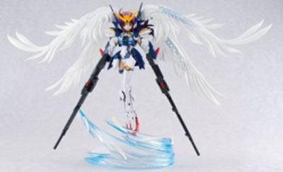 The Wing Gundam Zero (EW ver.) MS Girl joins the Armor Girls Project in angelic form. Exquisite wing parts are compatible with Robot Spirits Wing Zero (EW ver.)! A full-array of accessory parts are featured in this set- A total of three sets of interchangeable hair and face parts, beam saber and twin buster rifle accessories, three sets of interchangeable hand parts, and special display stand are included.