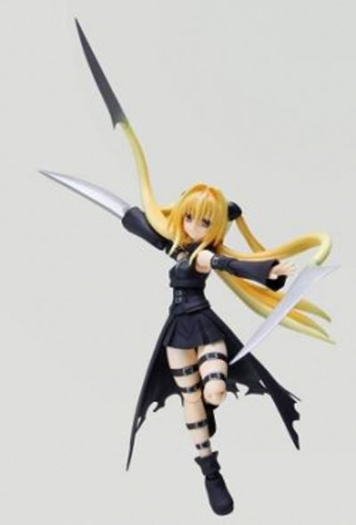 Konjiki no Yami (Golden Darkness), the main character and lonely assassin from the To Love-Ru Darkness anime series joins the S.H.Figuarts line-up in super articulation (six points of hair articulation!), dynamic option parts and depiction of the character’s transformation ability to allow for re-creation of a variety of Konjiki no Yami anime scenes. This deluxe action figure set features a total of three expressive interchangeable face parts, interchangeable left and right hair parts, hand blades, book and taiyaki (fish shaped sweet confectionary) accessory parts, three sets of interchangeable hand parts, and special display stand.