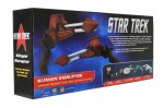 Diamond Select Toys is on a roll with the Star Trek releases. Following last week’s Enterprise-E, they’ve now released pictures of their Klingon Disruptor – in two versions. The standard release reflects how the weapon appeared in Star Trek: The Next Generation while Action Figure XPress has an exclusive version from Star Trek III. Each has three different settings, the thumb trigger can activate single shot, rapid-fire and “disintegrate” sound effects, with a flickering red LED at the muzzle. Check out the gallery below for pictures, go to AFX for the Kruge edition, watch demonstration videos here and here.