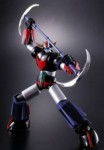 Following the release of Super Robot Chogokin Mazinger Z and Great Mazinger, Grendizer will complete the series as the third major Go Nagai robot title to join the Super Robot Chogokin series! Employing diecast material for added weight, this advanced robot action figure set also features cutting-edge articulation technology and a wealth of option parts. A cross-over joint system will allow for interchangeability with upcoming Spaizer release. Accessories featured in set include metallic colored double harkens, screw crusher punch and space thunder effect parts, and three sets of left/right interchangeable hand parts.