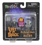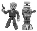 Diamond Select Toys have released new images and details of their SDCC exclusive black & white Dr. Smith and Robot minimates. This first pair of Lost in Space minmates include with interchangeable parts and accessories, including a laser pistol and two additional Dr. Smith heads that capture his wide array of facial expressions. They will come packaged on a full-color blister card and be available at the show for $10 (and are available for preorder at several outlets online). See some new pics below.