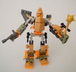 In the box there’s 5 bags of parts – one for each robot and a bag of parts needed to build Grimstone. Each of the robot builds are essentially legs + tors0 + “backpack” + head + helmet. Despite the formulaic approach, each of the four robots, Mollox, Ironeye, Crackback and Iquanox look distinctive. They are also each well armed. To go from robot mode to beast mode, you need to take a few parts off and rebuild each one. In general this worked well except for Mollow – the flying beast. Due to some interference between the helmet and the ‘backpack’ I had to add an extra part to the top of his head so there was sufficient space and the helmet would stay on. I checked the directions a couple times to make sure I was doing it right, and I was. Weird.