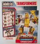 Transformers: Age of Extinction, the fourth Michael Bay directed Transformers cinematic outing, opened this past weekend to huge box office numbers. This week AwesomeToyBlog will take a daily look at one of the new toys in support of the film. Today’s entry is the Kre-O Micro Changers Combiner Grimstone. Grimstone is the combined mode of Mollox, Ironeye, Crackback and Iquanox.