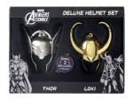 Monogram has announced their latest SDCC exclusive, a 2 piece key chain set of Thor and Loki’s helmets. The Thor helmet has a special edition pearl silver color and the Loki helmet is gold in color. These come packaged in a black display case and include bio cards for Thor and Loki. This set is priced at $25.
