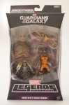 Rocket Raccoon, being an alien that looks like a raccoon is a pretty small guy. The figure measures about 3.5″ tall, from feet to tip of his ears. The articulation is a little different than most Legends – Rocket’s only lower body articulation is his tail – which is good, as you’ll need to use the tail to make him stand. Rocket’s waist is articulated on a ball joint, he also has articulated shoulders, elbows, wrists and neck. Some articulation at his feet would have been helpful so he could stand without his tail serving as a third point, but fitting a joint into his ankle would have been pretty tough considering how small it is. I don’t have any issue with the “limited” articulation in this case because the sculpt is fantastic. This figure looks as much as a space faring raccoon resembling alien as I could hope. The detailing on the sculpt is quite good, from the fur to his jump suit. The fantastic sculpt is joined by a solid deco, particularly in his face. A second “yelling” or “snarling” head would have been a great addition though, as it is Rocket has a very neutral expression. While he’s small, there’s a ton of fantastic work in this little guy.