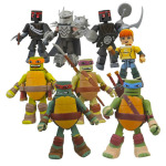 A Diamond Select Toys Release! The heroes on the half-shell are joining the Minimates family, and we’re offering them in a whole new way! Each countertop display contains 18 blind-bagged pouches, and each pouch contains one 2-inch Minimates mini-figure, featuring interchangeable parts and accessories. Each display holds nine different Minimates, including Leonardo, Michelangelo, Donatello, Raphael, April O’Neil, Shredder, Foot Soldier, Footbot and a rare, one-per-case translucent Raphael! There’s a full set in every case! Designed by Art Asylum!