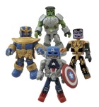 The Infinity Box Set will be available exclusively at Toys”R”Us starting this month, and will include Space Suit Captain America, Armored Hulk, Thane and Thanos, all based on their appearances in Marvel’s 2013 Infinity crossover. Each figure stands approximately 2 inches tall and features interchangeable parts. Also included in the set are four clear display bases, as well as hairpiece, glove and shield accessories for Captain America.
