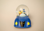 The Batmobile Water Globe measures 5″ long, 2.5″ wide and is a bit under 4″ tall. The design of the snow globe is a little different as the ‘globe’ part is only the seating area of the Batmobile, holding Batman and Robin. The Batmobile design used is the 1964 comics version, a nice departure from other, more common designs. Both the Batmobile itself and the Batman and Robin inside the globe are well sculpted and painted. Having Robin’s cape flowing behind him is a fantastic touch and gives this static sculpture a great suggestion of motion. I’m really impressed with the quality of the sculpt here – very true to the 60’s comic aesthetic.