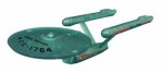 A Diamond Select Toys release! As seen in the classic Star Trek: The Original Series episode “The Tholian Web,” the Constitution-class starship U.S.S. Defiant was caught in an interphasic rift, leading to madness and death among the crew before being drawn into another dimension. To celebrate the impending anniversary of the original series, DST will bring a limited run of this 16” model, cast in translucent green plastic to simulate the effects of interphase, to their booth at Comic-Con! Packaged in a full-color window box with a display stand. Limited to 200 pieces.