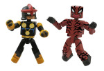 The assortment, based on the animated series Marvel’s Ultimate Spider-Man, includes three different two-packs: Spider-Man with Nick Fury, Nova with Carnage, and Stealth Suit Spider-Man with Sandman. Each 2-inch Minimates mini-figure features 14 points of articulation, as well as fully interchangeable parts and accessories. Spider-Man comes with a web line, Nick Fury comes with a pistol, Nova comes with a hairpiece and flight stand, Sandman comes with shape-shifting hands, and Stealth Spider-Man comes with an alternate chest block!