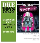 DKE Toys have announced their next two DCON releases – both Star Case X Suckadelic 6″ vinyl figures. “Gay Empire” and “Sucklord” are limited to 25 pieces and priced at $110 each. You can find these at DKE Toys’ booth at Designer Con in Pasadena November 21st and 22nd. Their booth is #812.