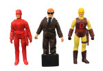 A Diamond Select Toys release! Finally, the devil has come to the Marvel Retro line! Never released in the classic Mego toy line of yester-year, streetwise superhero Daredevil is the latest Marvel character to get the Retro action figure treatment from DST! This gift set features one classically-styled red-costume Daredevil figure, in a vintage-style box, plus two additional heads and outfits: his original yellow costume and his alter ego, blind lawyer Matt Murdock! With interchangeable heads, hands, costumes and accessories, you can display your Daredevil however you want! Packaged in a full-color gift tray with a booklet about Daredevil, retro-style figures, and the creation process! Designed and sculpted by EMCE Toys! (Item #FEB162460, SRP: $80.00)
