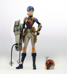Darth Maul, Kanan and Sabine are 3 3/4″ while the other Sabine figure and Princess Leia are 6″ Black series figures.