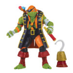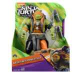The 5-inch Basic Action Figures include the four Ninja Turtles–Leonardo, Raphael, Donatello and Michelangelo–as well as Stealth Leonardo, Pirate Michelangelo, Wingsuit Raphael, April O’Neil, Bebop, Rocksteady, Casey Jones, Foot Soldier, Kraang, Splinter and Shredder. Other action figure assortments include the 11-inch Action Figures and the 6-inch Battle Sounds Figures, which feature a button on the figure’s backpack that triggers up to ten sounds and phrases from the movie. Both assortments include the four Ninja Turtles, as well as Bebop and Rocksteady.